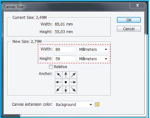 .Add another 0.155″ (4 mm) to the height and width so that your document has enough margin for the cut.