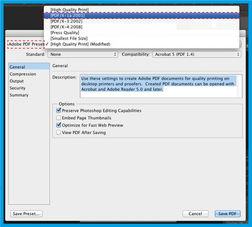 .Then select and on the right side in This option ensures that you save your file without any color prompts, and then click Save Preset..., save these PDF presets with whatever name you want, in order to .