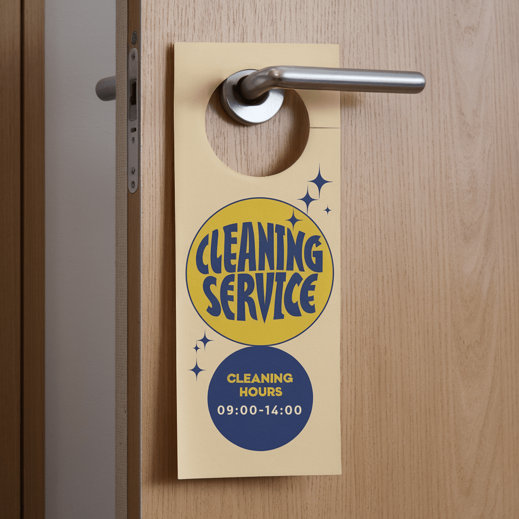 Customizable door hangers for cleaning services. Perfect for scheduling, updates, or promotional offers. Ideal for residential and commercial cleaning businesses.