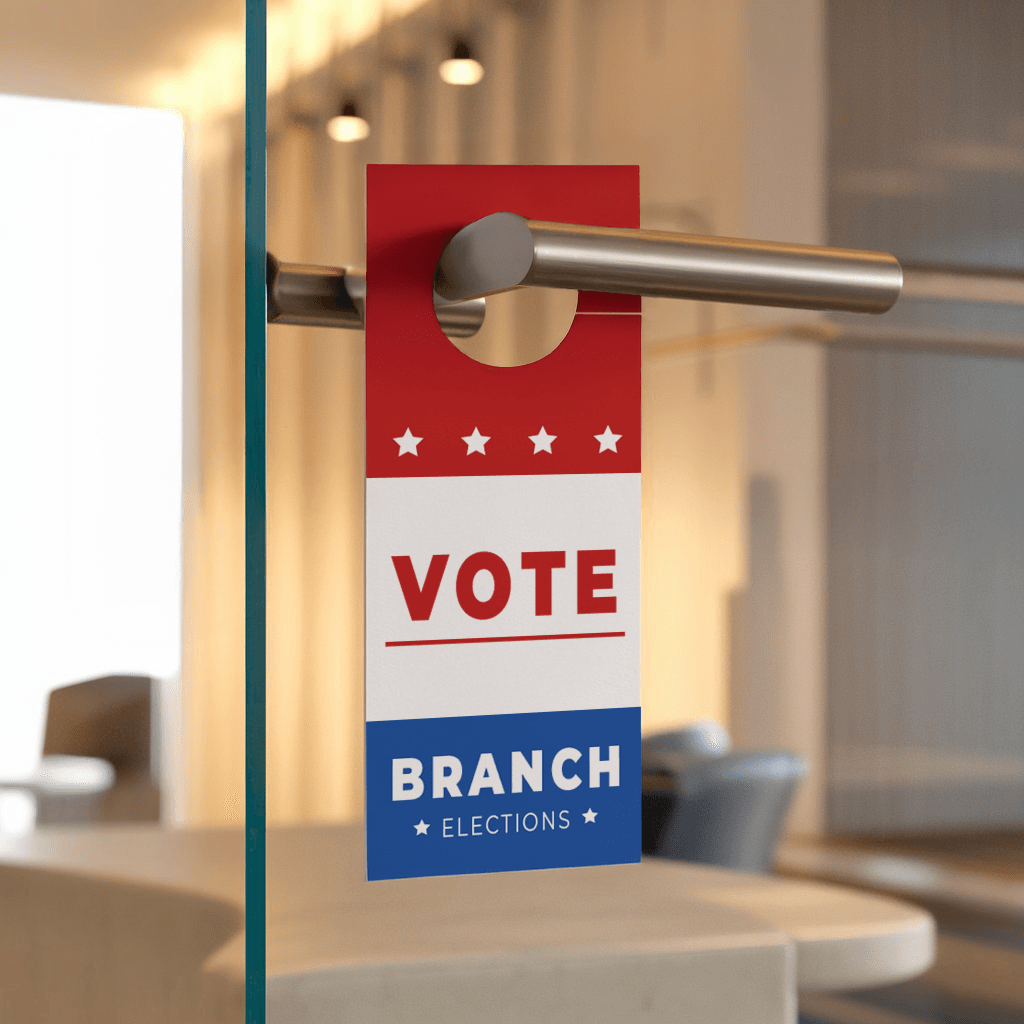 Customizable door hangers for political campaigns. Ideal for delivering messages, flyers, or promotional materials. Perfect for reaching voters in local communities and neighborhoods.