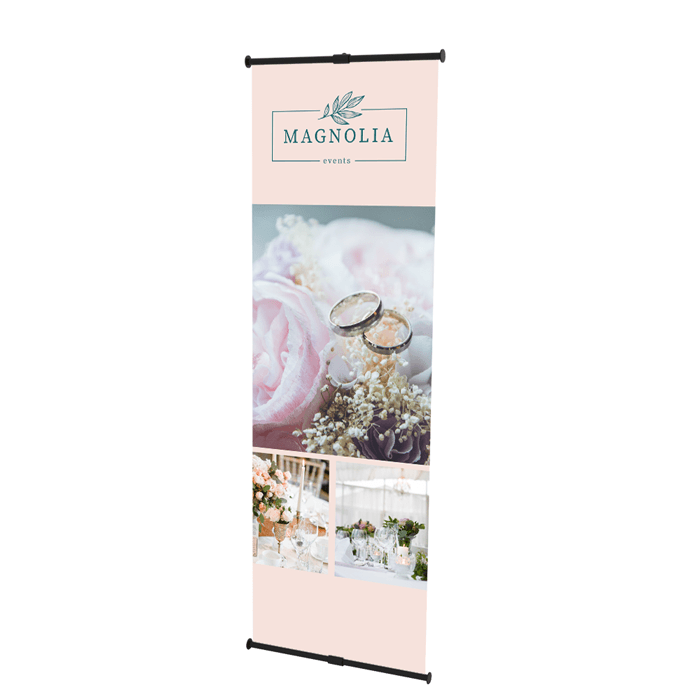 Order L-Banner Stand and highlight your brand. Personalize with a creative design using one of our templates or upload your own design.
