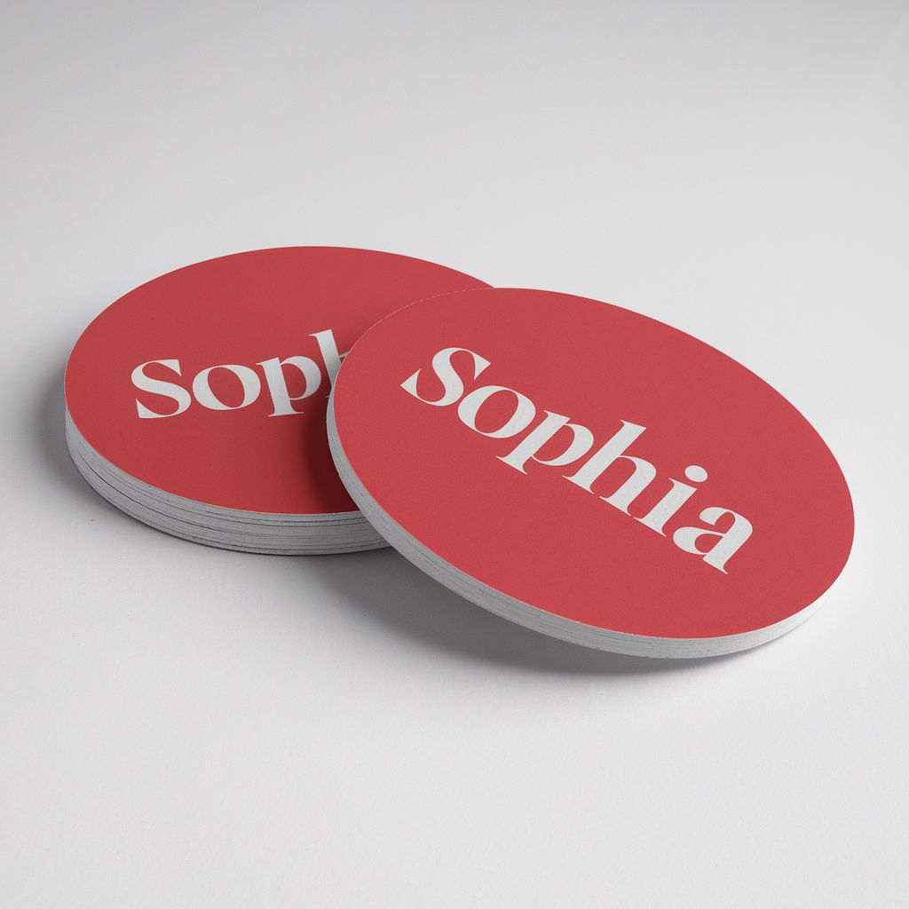 Personalized coasters with individual names. Available in various fonts and styles. Ideal for gifts, parties, and place settings.