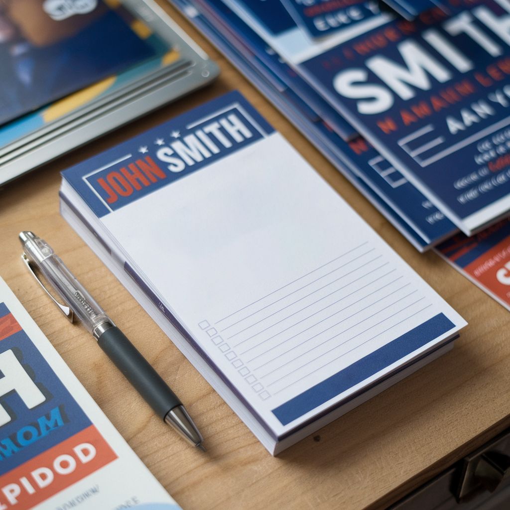 Customizable notepads for political campaigns and elections. Perfect for making notes, schedules, and campaign messages. Ideal for political candidates, teams, and volunteers.