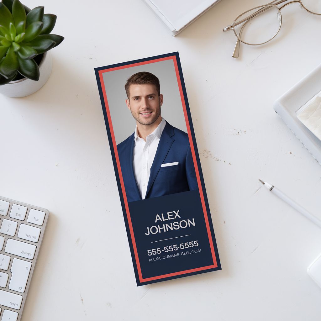 Customized bookmarks for realtors and agencies. Showcase contact info and branding. Perfect for marketing, events, and giveaways.