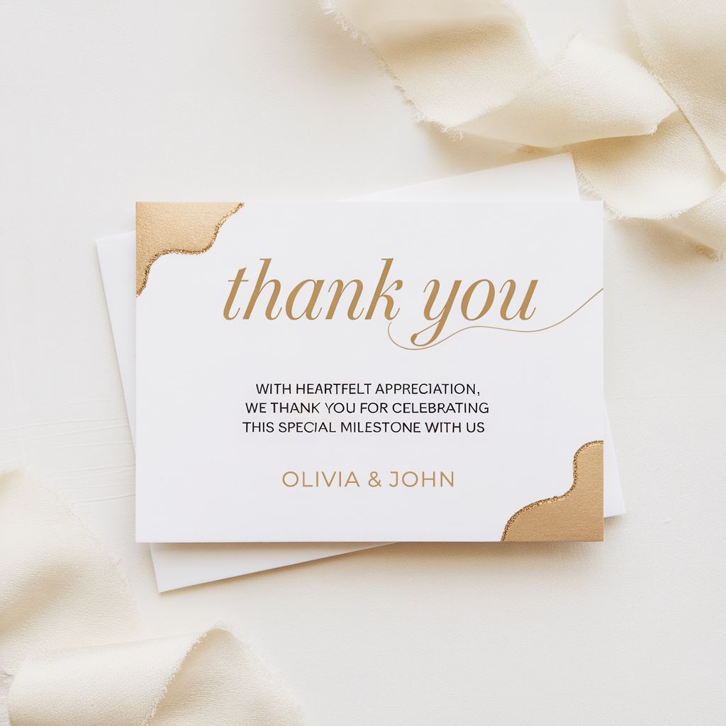 Thoughtful cards for anniversary gratitude. Customizable with names, messages, and designs. Perfect for thanking guests and loved ones.