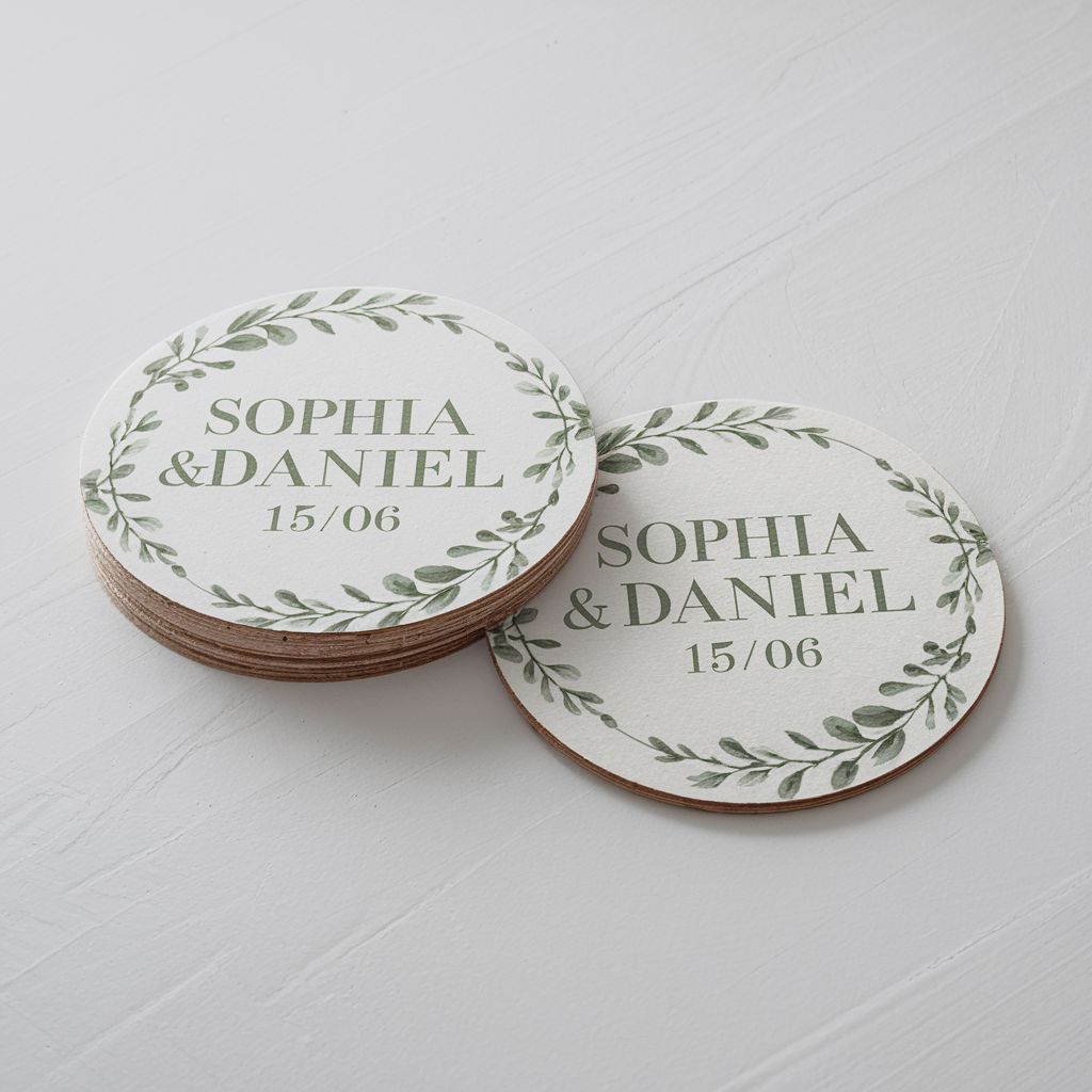 Elegant coasters for wedding favors or décor. Customizable with names, dates, and messages. Great for table settings and keepsakes.
